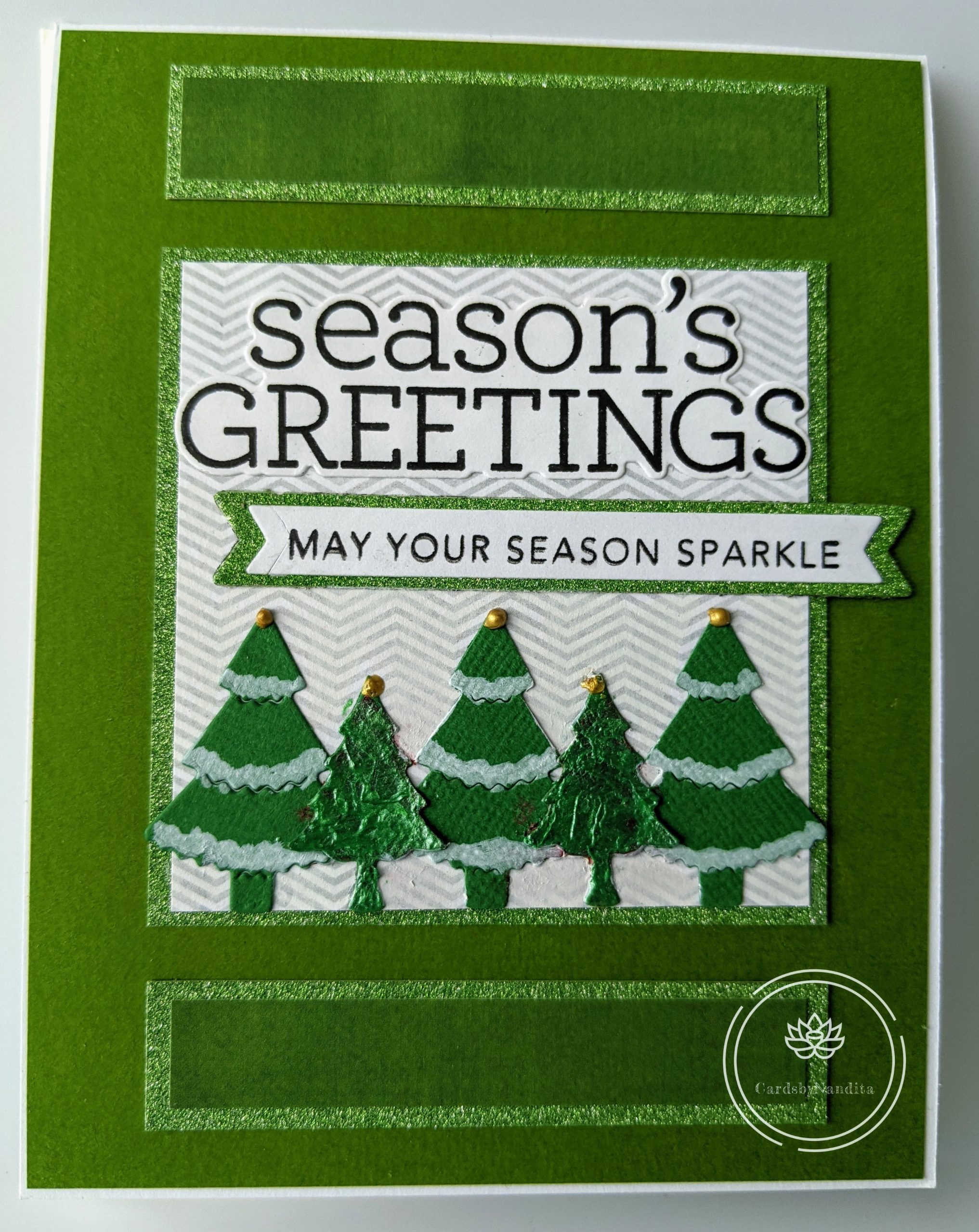 The most difficult part of the entire card actually ended up being the sentiment on the inside of the card. To match the greeting (from Card Making Magic’s Love & Marriage stamp set), I wanted to heat emboss the recipient’s names in a similar font. It took many tries to mimic the font. But once I was happy with it, I used an Embossing Ink pen to write and then the same gold embossing powder.